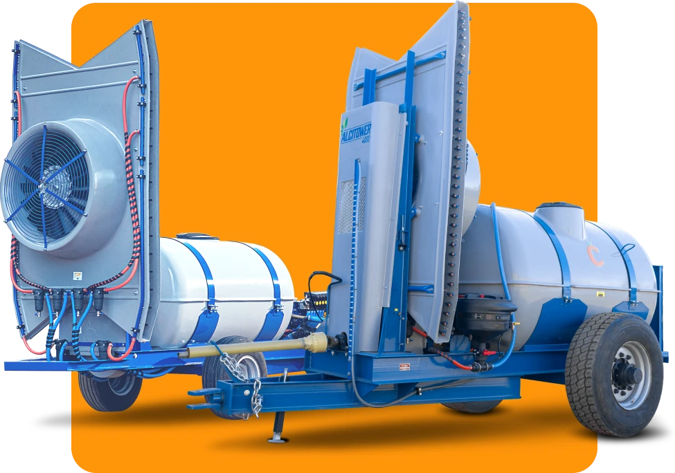 Projetado especialmente para pomares adensados, o ALCITOWER Bilateral entrega eficiência e cobertura completa em cada aplicação. Com reservatórios em fibra de vidro de 2.000L ou 4.000L, ele garante mais autonomia e produtividade no campo. Seu sistema de ventilação de alta performance realiza uma pulverização uniforme e precisa, atingindo da saia até o ponteiro das plantas.